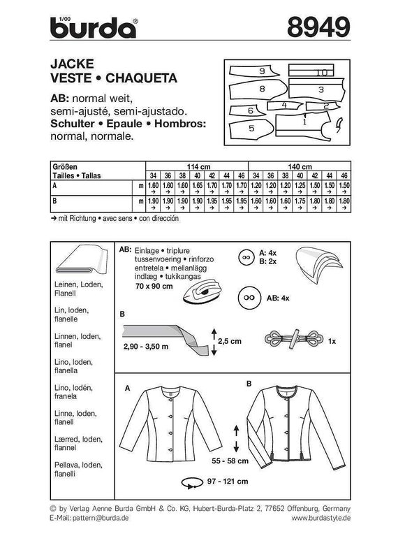 Sewing Pattern Jacket Burda 6090 Fabrics Hemmers