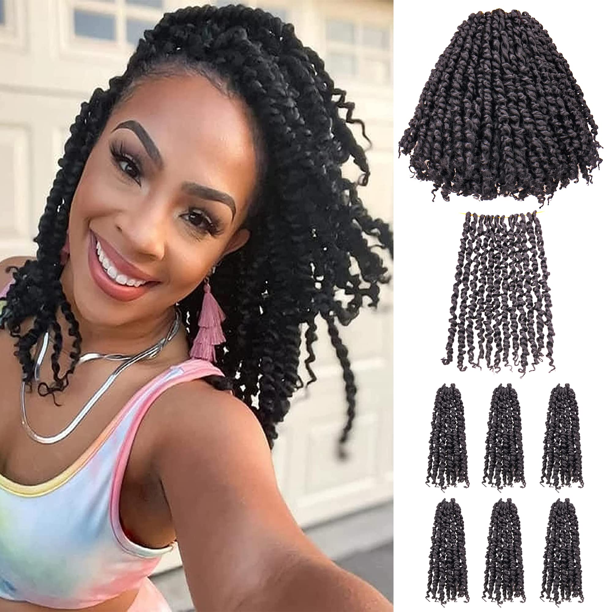 Amazon Com 10 Inches 7 Packs Pre Looped Pretwisted Passion Twist Crochet Hair For Black Women And Kids Natural Black Soft Hair Extensions Braided By Synthetic Spring Kinky Twist Bohemian Curl 10 7 Packs 1b Beauty